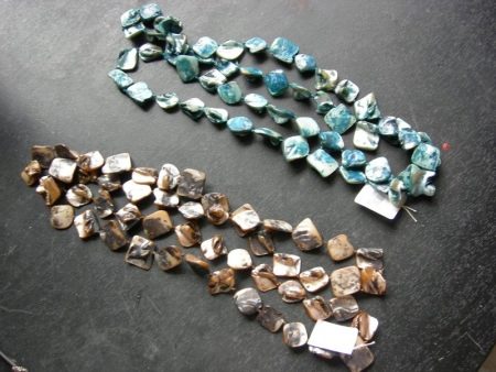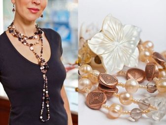 לא פחות מעניין, אבל בהירים ובולטים יותר הם חרוזי אם הפנינה עם משטח ססגוני. מודלים עשויים אקוומרין ואוונטורין גם נראים יפים. המוצרים משחקים עם צבעים שונים לחלוטין - אחד מהם כחול שמיים, והגוון של השני מזכיר את גווני הסתיו החמים.