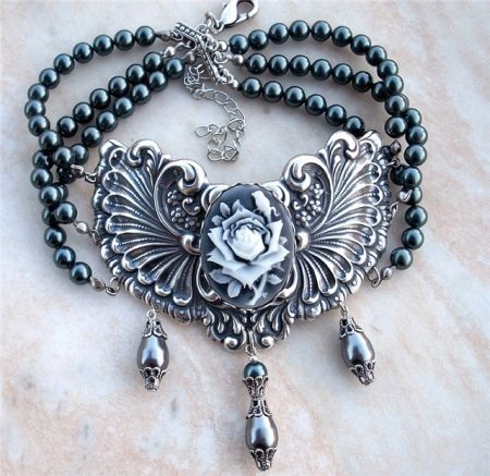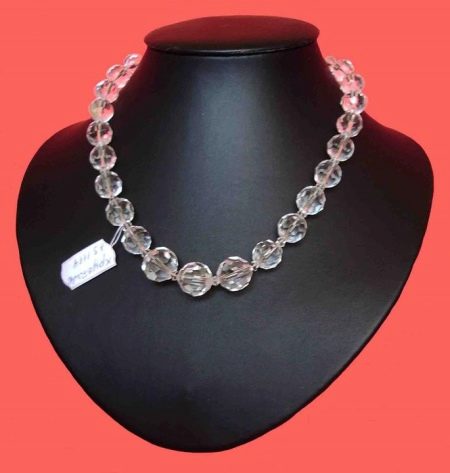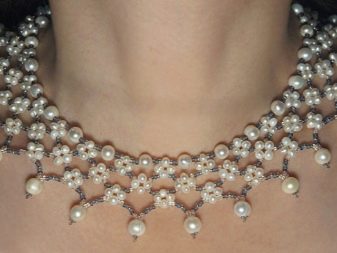 שקופים, כמו קרעים, חרוזים בצורות שונות מעטרים את המוצר שנעשה מקריסטל סלע. מודל כזה יעטר את הצוואר של יפהפיות נשיות ורומנטיות, אבל עדיף לא ללבוש מוצר עם דברים קלים - זה יאבד על הרקע שלהם.