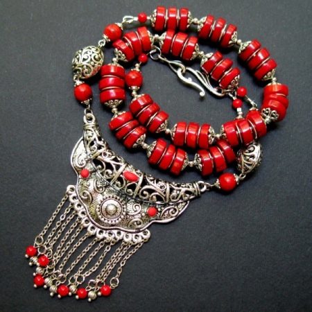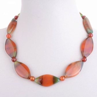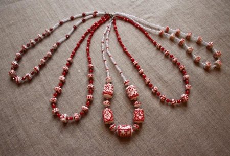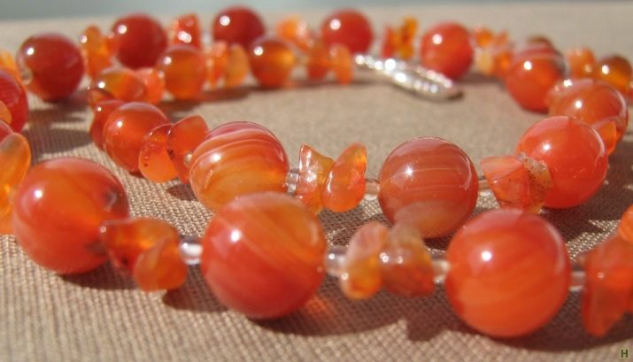 חרוזים יפים ומתוחכמים מאוד בגוון אדום בוהק עשויים מקרנליאן. דגמים מסוימים, כאשר משתמשים בטכניקת עיבוד מיוחדת, יכולים לקבל צבע אומברה - אדום בוהק, הופך בצורה חלקה ללבן.