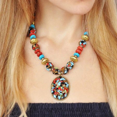 הודו היא מדינה של חגיגה, צבע וכיף אינסופי. לתכשיטים בסגנון הודי יש אופי מקביל - חרוזים עשויים בדוגמאות מרובות שורות תוך שימוש בצבעים עזים, קרובים לצבע האש והשמש.
