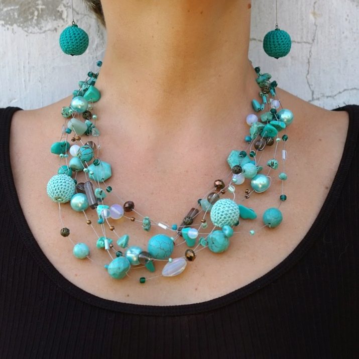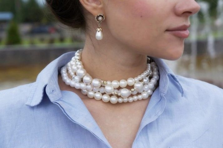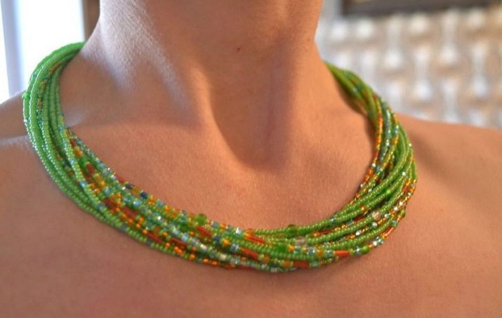 חרוזים מרובי שורות נראים מרהיבים, יוצרים נפח נוסף באזור הצוואר והחזה. בנות עם צורות עקומות אינן זקוקות לאפקט כזה, לכן סטייליסטים ממליצים על דגם זה ליפיפיות רזות במיוחד.
