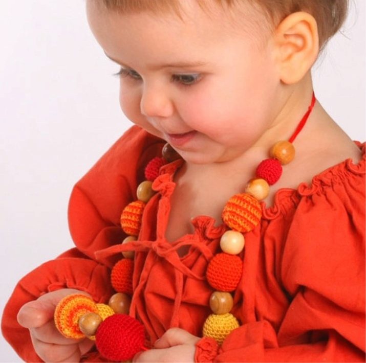 חלקים צהובים, ירוקים וכתום מושלמים למראה קיץ בהיר.חרוזים צבעוניים משמשים לעתים קרובות כאביזר להשלמת תלבושות ילדים.